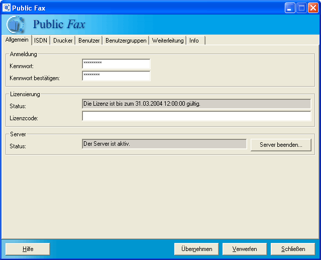 Public Fax Server starten und beenden