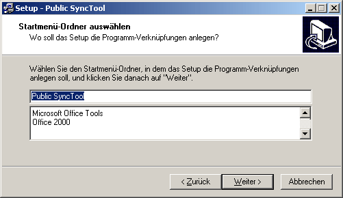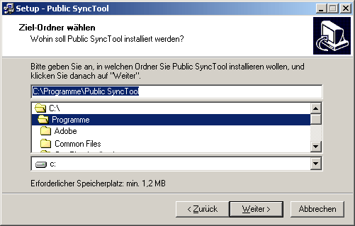 Als Standard wird in das Verzeichnis "C:/Programme/Public SyncTool" installiert.